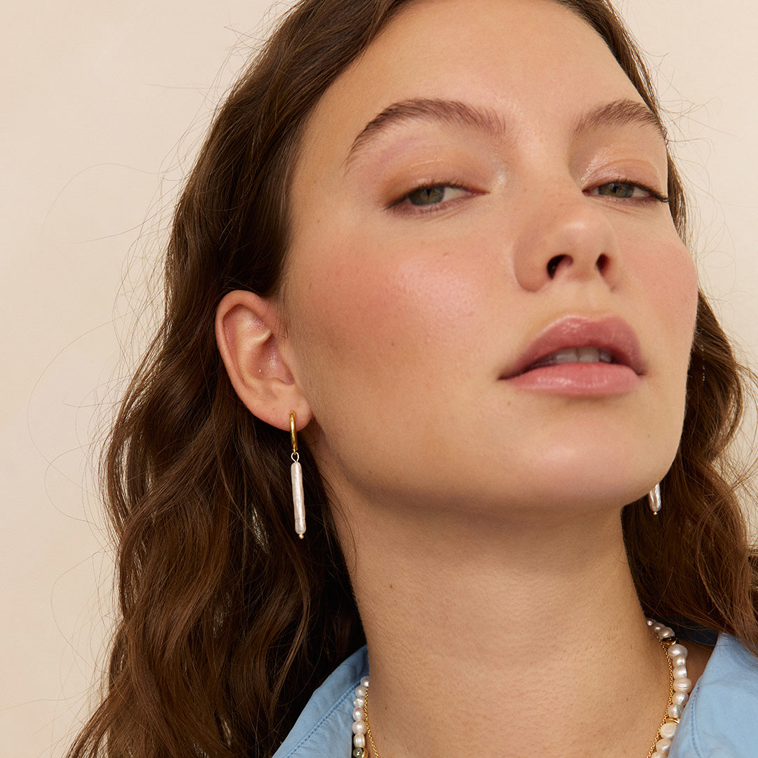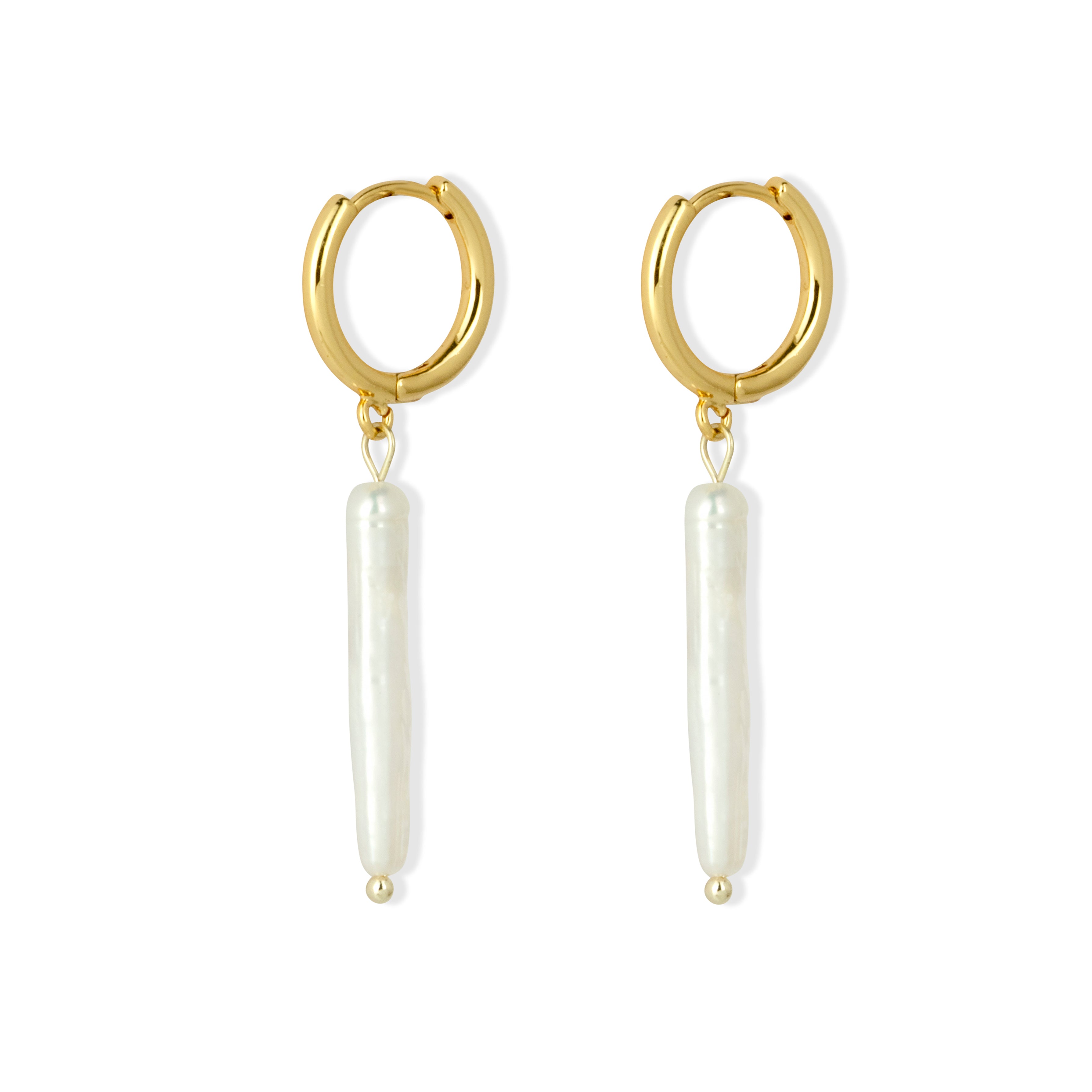 Delicate gold huggies that hug your ear with effortless charm, complete with a dangling pearl pendant for that perfect touch of understated elegance. These everyday earrings blend timeless pearl beauty with modern minimalist design—the kind of piece you'll reach for again and again.