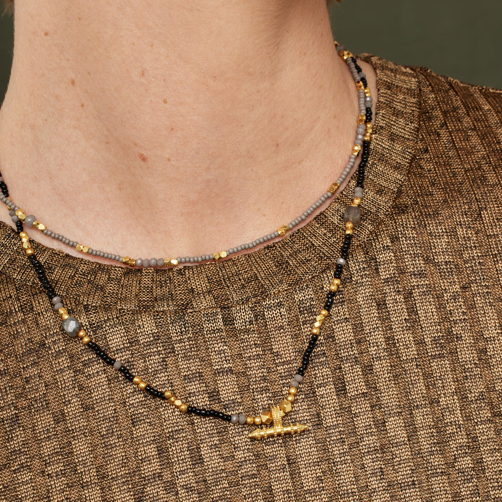 The Riley necklace features mixed shape and size glass beads with tiny gold details. Designed to be worn with a pendant necklace, this choker is your perfect partner if you are into layering your necklaces just like we do!