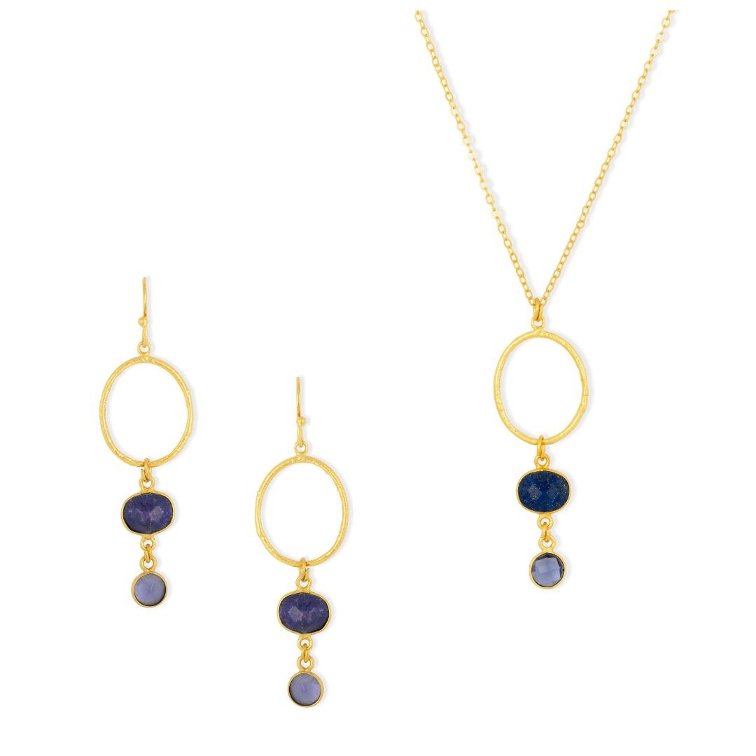Shop our best selling Cadiz combo. Delicate semi precious drops on a gold oval charm. Elegant and unique handmade jewellery.