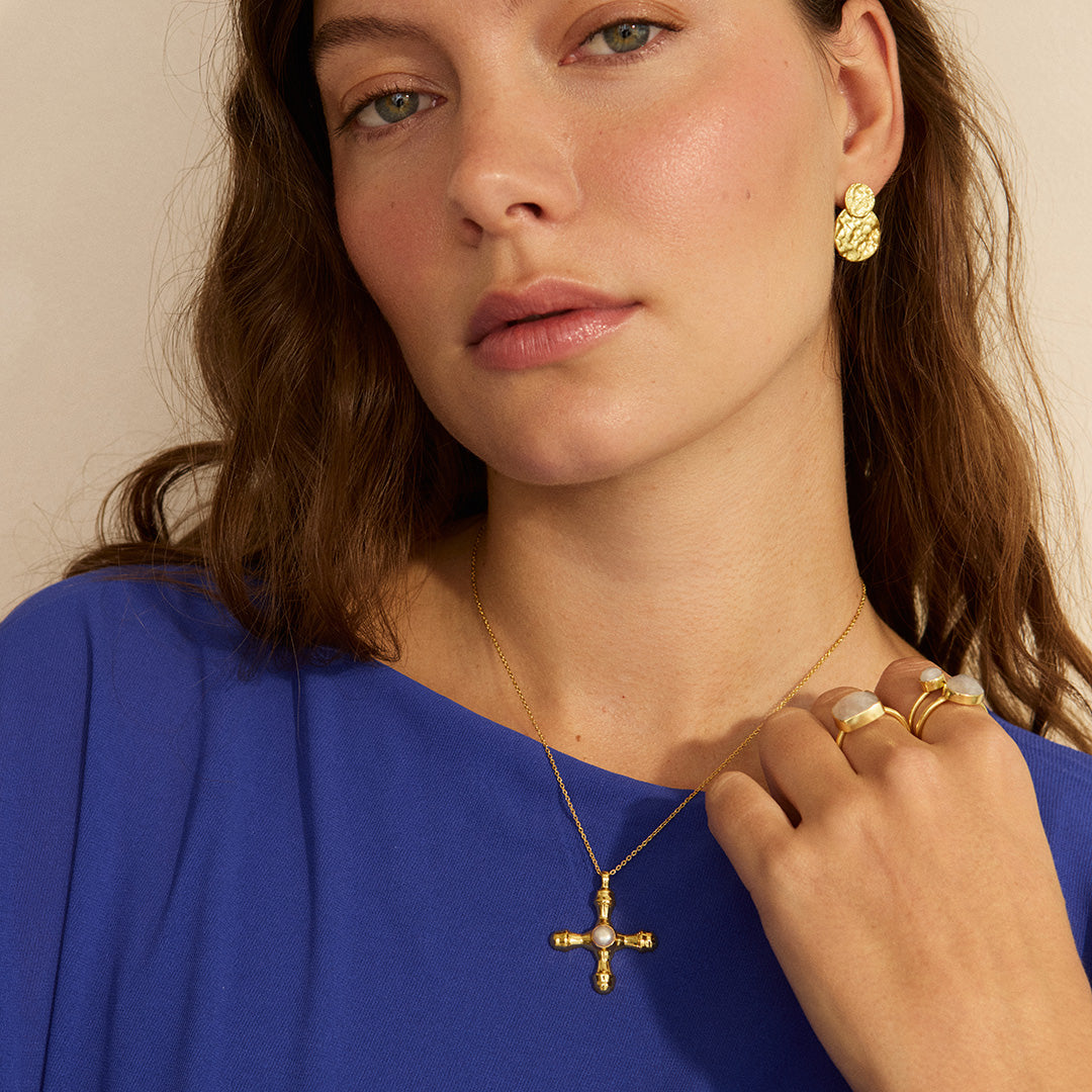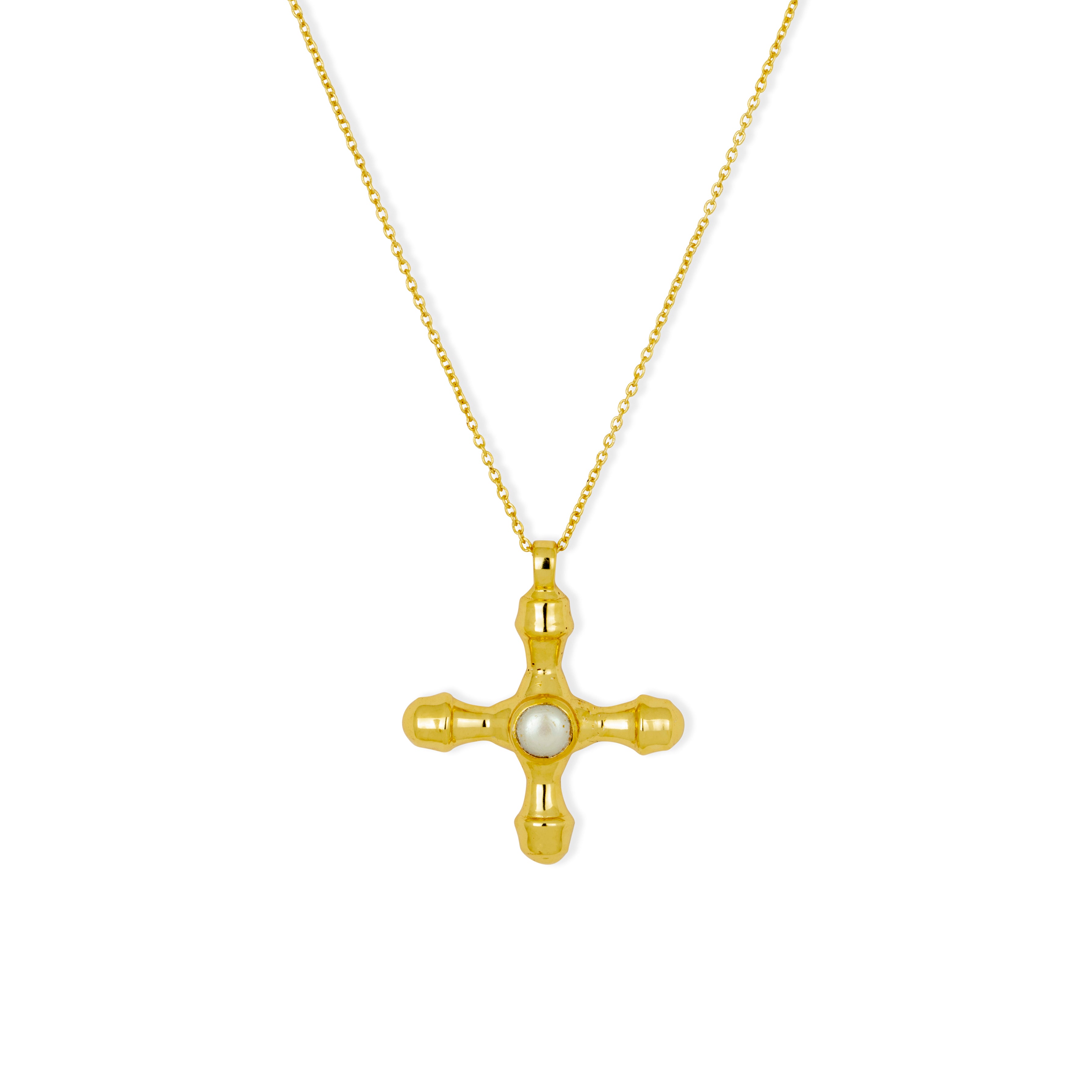 Clemente Gold Pearl Cross Pendant Necklace