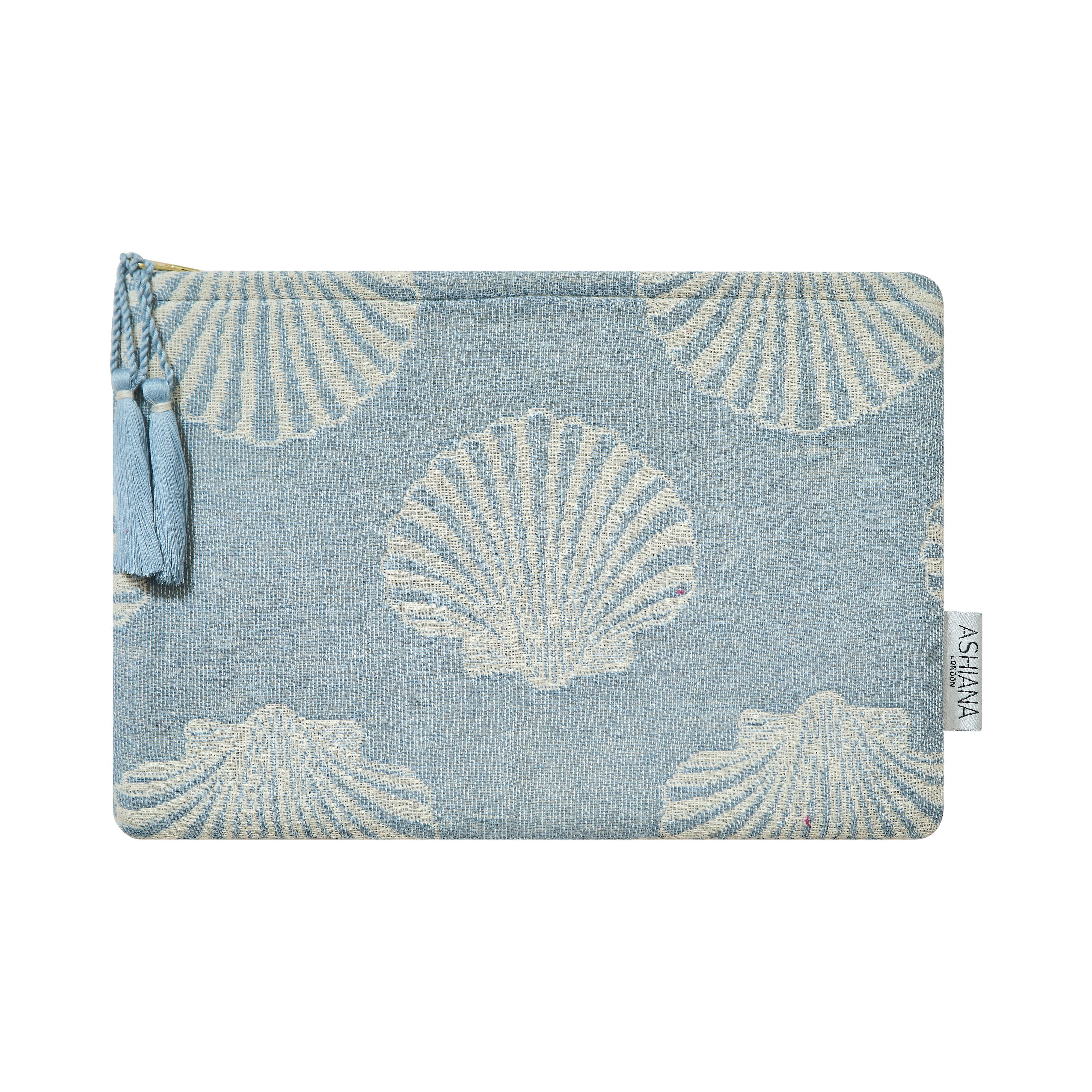 Keep your holiday essentials safe and stylish with this charming light blue makeup pouch featuring an adorable shell pattern. Crafted with waterproof material, it's the perfect travel companion for protecting your cosmetics, toiletries, and jewellery from spills and splashes. Whether you're heading to the beach or jetting off on an adventure, this playful pouch keeps everything organised and dry. Compact enough to slip into your luggage yet spacious enough for all your must-haves.