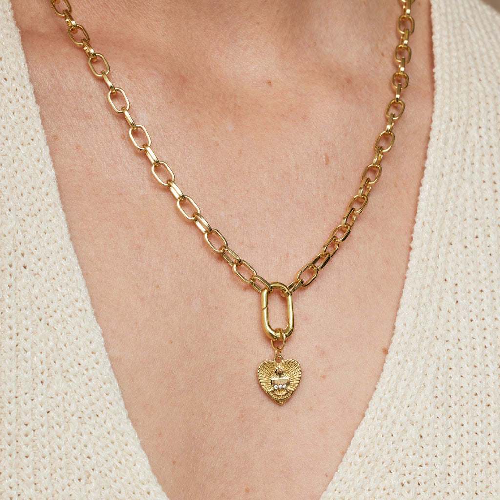 Add a splash of joy to your jewelry with this gold heart charm featuring a tiny palm tree. A cheerful and playful touch perfect for creating your own unique collection.
